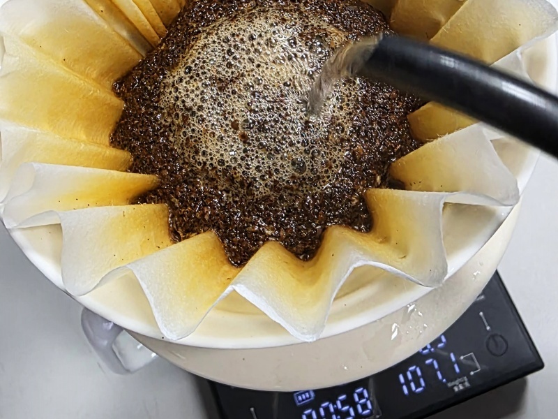 當你注入第一波熱水時,粉層會像蛋糕一樣鼓起,散發出迷人香氣。