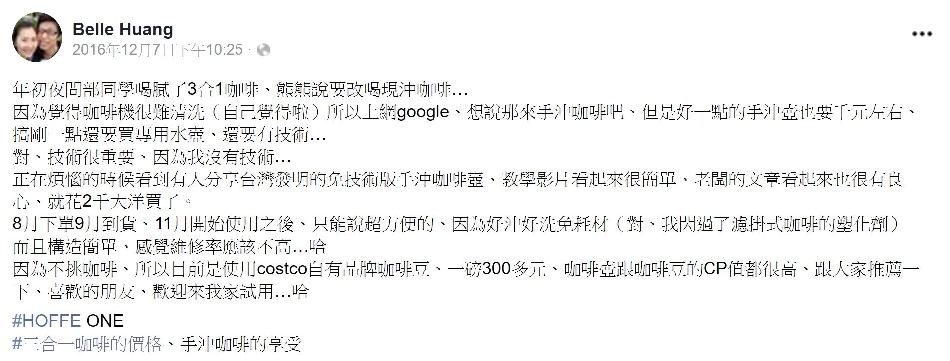 Belinda Ma: 已多次回購,咖啡非常好喝!