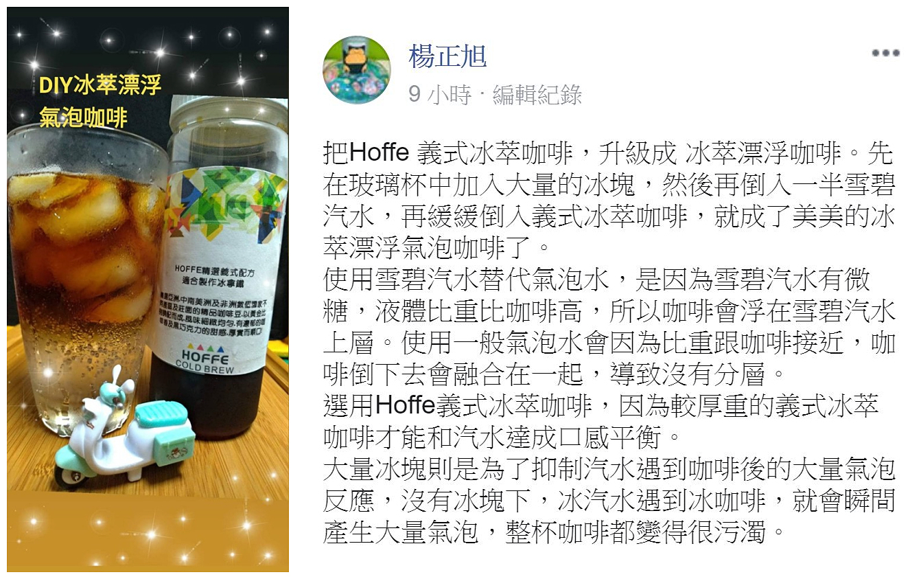 Joy Hsu: 冰釀真的很好喝,我原本不喝冰咖啡的,一直覺得咖啡要熱的才好喝,現在改觀了!
