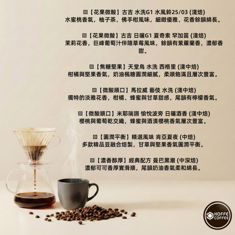 HOFFE 精品咖啡現貨限量開賣,不必等待預購,今天下單最快明天就能喝到。每盒 20 包濾掛咖啡,嚴選七款精品風味,從花香、果香到酒香與厚實口感一次收錄。每包 12g 豪華份量,新鮮烘焙後立即封裝,搭配日本濾袋與純鋁箔外袋,並加入脫氧劑延長風味,飲用更安心。數量有限,售完即止,想要每天一杯新鮮精品風味,現在就是最佳時機。