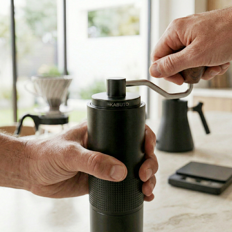 在市面上百百款磨豆機中,Kabuto 憑藉全金屬機身、五軸精密刀盤與職人工藝外型,穩居高階手搖市場的實力代表。