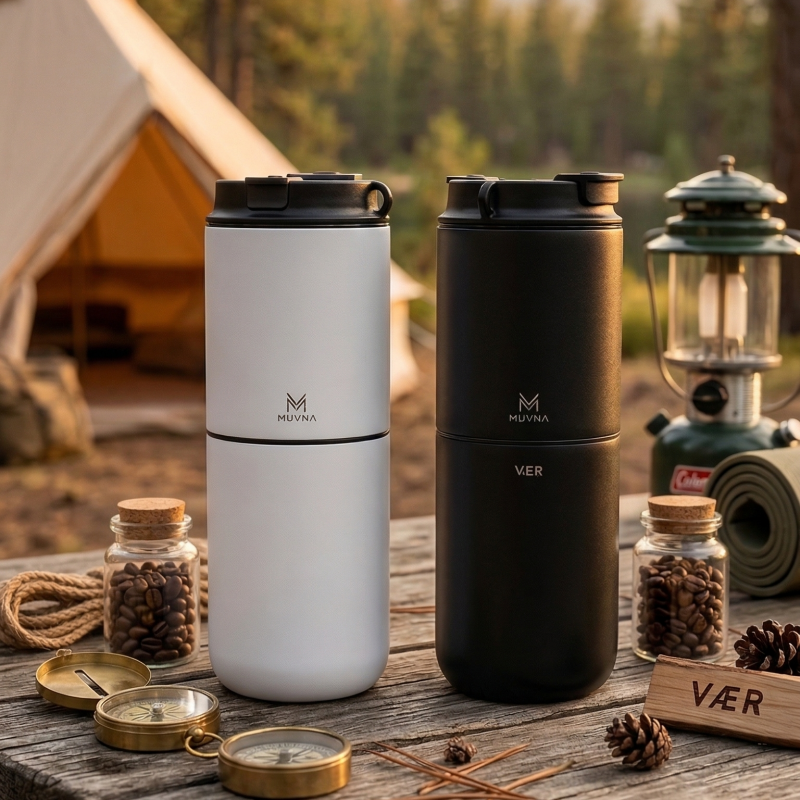 電動研磨機、手沖咖啡機、保溫杯整合在一體,出發時不用再大包小包準備器材,