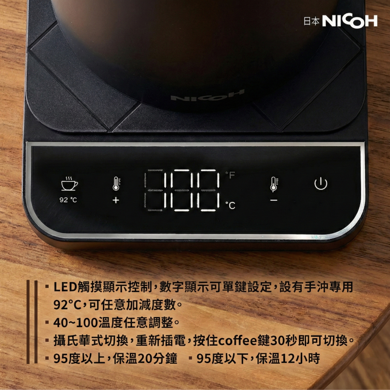 ▶️ LED觸摸顯示控制,設有手沖專用水溫。