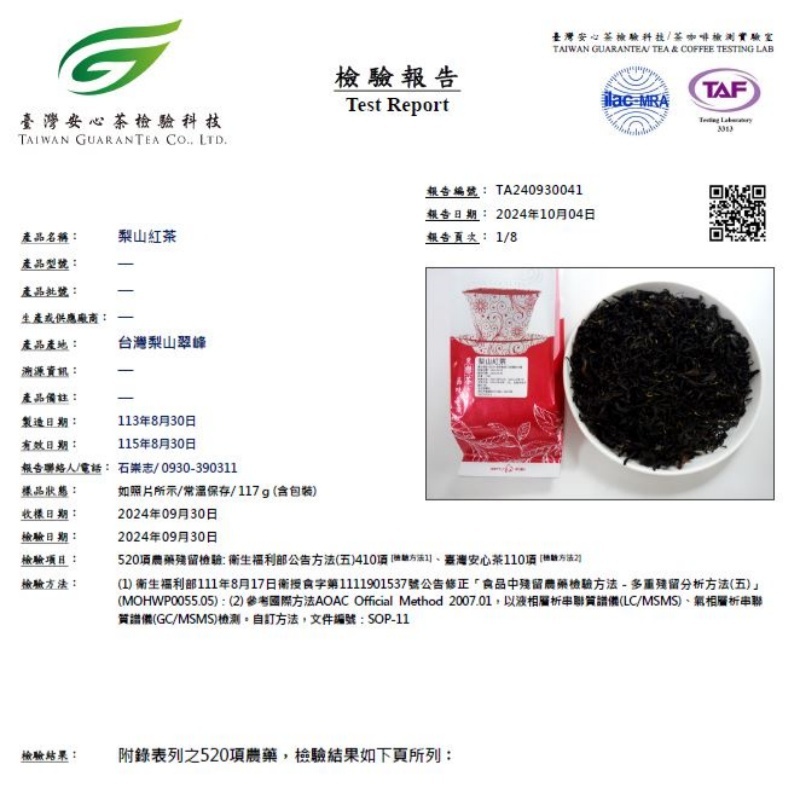 台灣高山梨山紅茶具有獨特的風味和香氣。 清新、花香明顯、甜感十足為其主要特點,喝在口中會帶有一點果味或奶香。 口感柔和,茶湯明亮、呈現金黃色,令人心曠神怡。